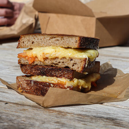 Keindahan menu ini adalah Anda akan mendapatkan lebih banyak isian daripada satu sandwich. Anda akan mendapatkan 4 lapis roti renyah juga. Melihat foto-foto itu mungkin diasumsikan irisan tengahnya lunak, tetapi sama sekali tidak. Anda dijamin tidak akan merasa rugi membeli menu ini.