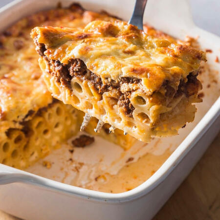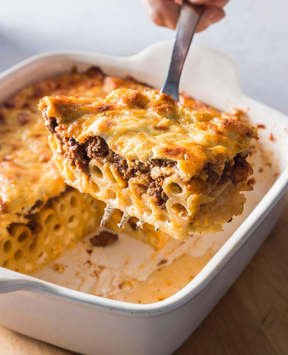Pastitsio (pastichio/pasticcio/pastizio) adalah pasta panggang Yunani atau lasagna Yunani yang terbuat dari lapisan pasta, saus daging yang lezat, dan topping béchamel krim yang memberikan kelembutan ekstra mewah dan sentuhan akhir yang hangat.
